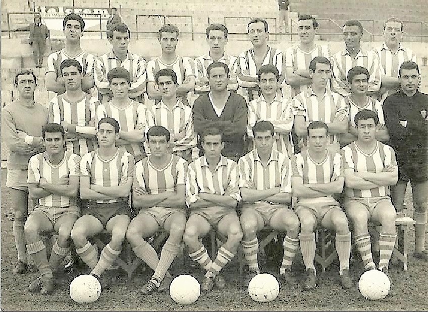 Meliá, Ben Barek, Miguel Alba (masajista), Ibarreche, Arias, Dalmau, Vázquez, Barinaga (entrenador) Portalés, Luna, Ramoní, Américo, Bruna, Rovira, Zárate, Pipi, Mendi, Sande y Benavídez.